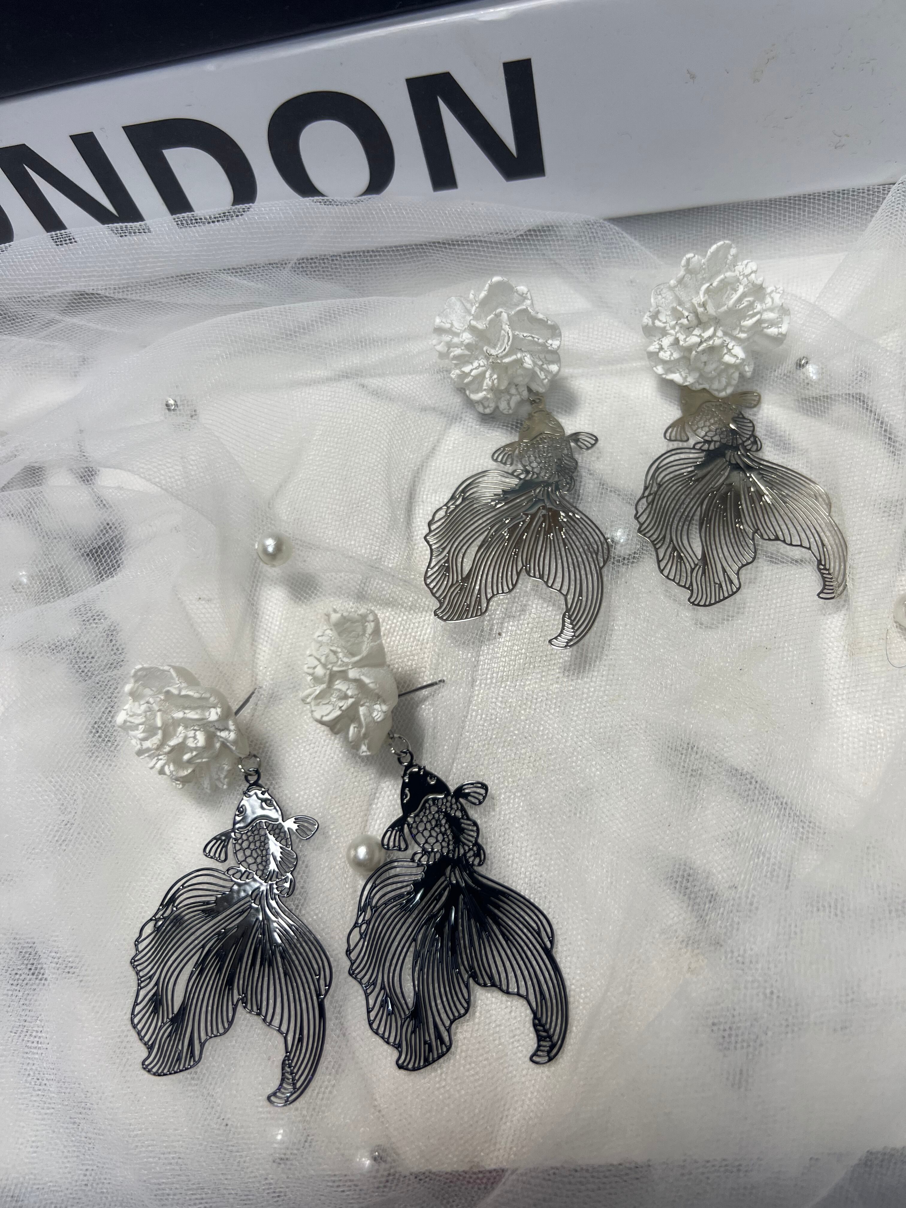 お花のカボションに大きめの金魚がゆらりᗦ↞◃