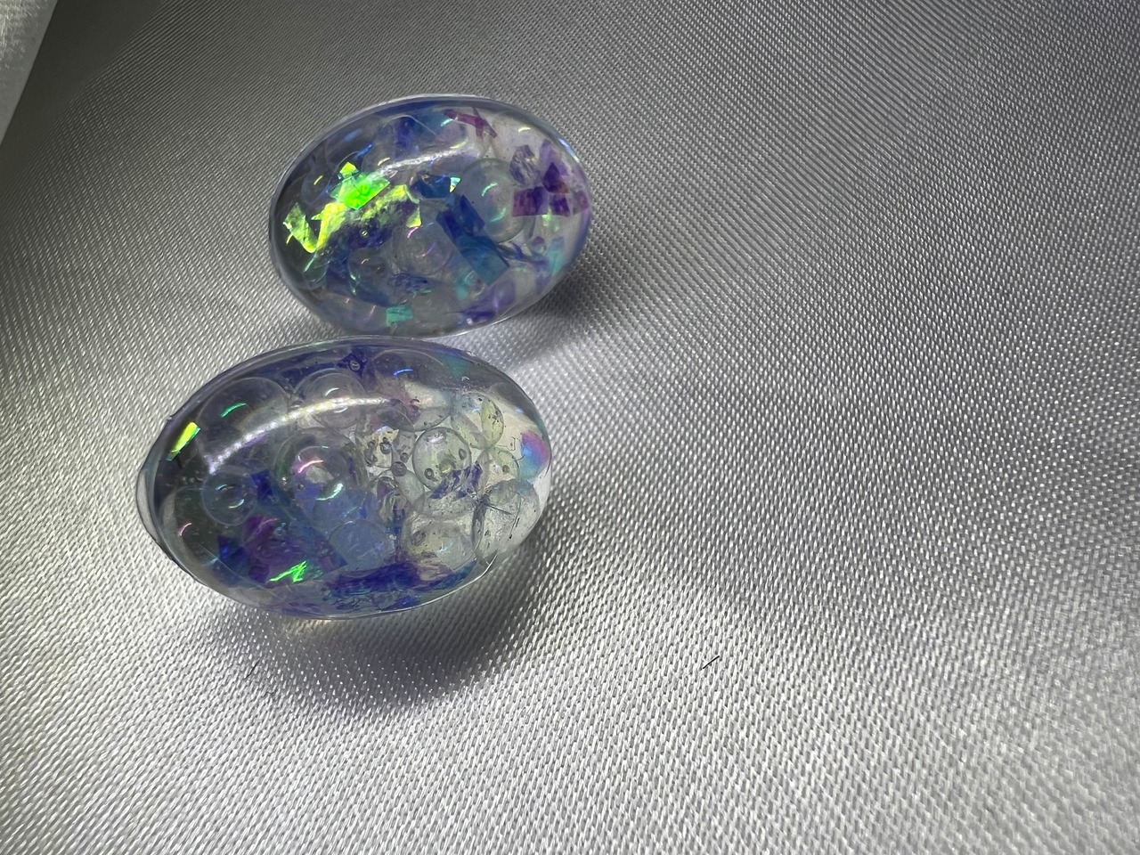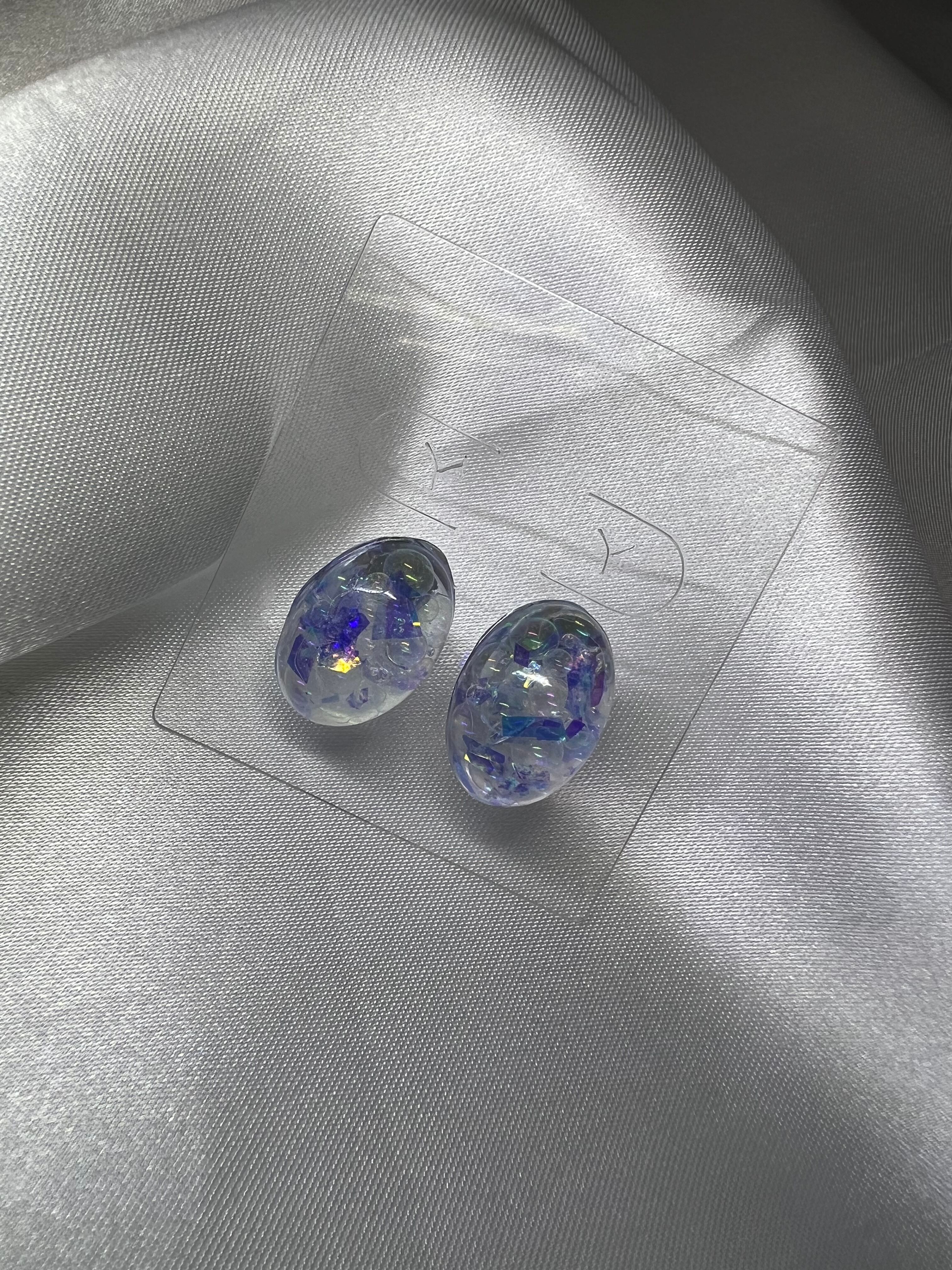 クリアベースにキラキラホログラム◎ うっすらとした水色が綺麗なピアスです。
