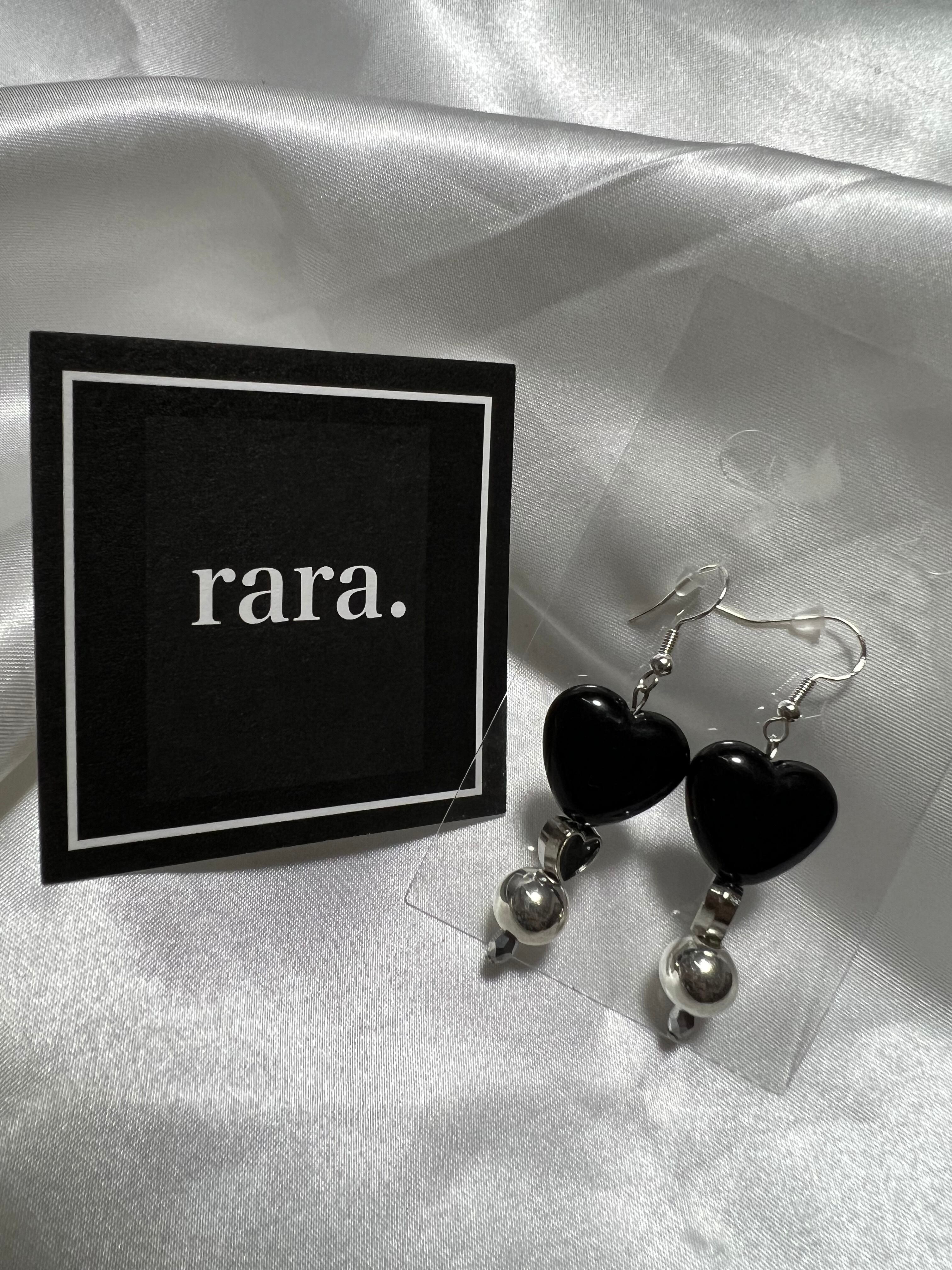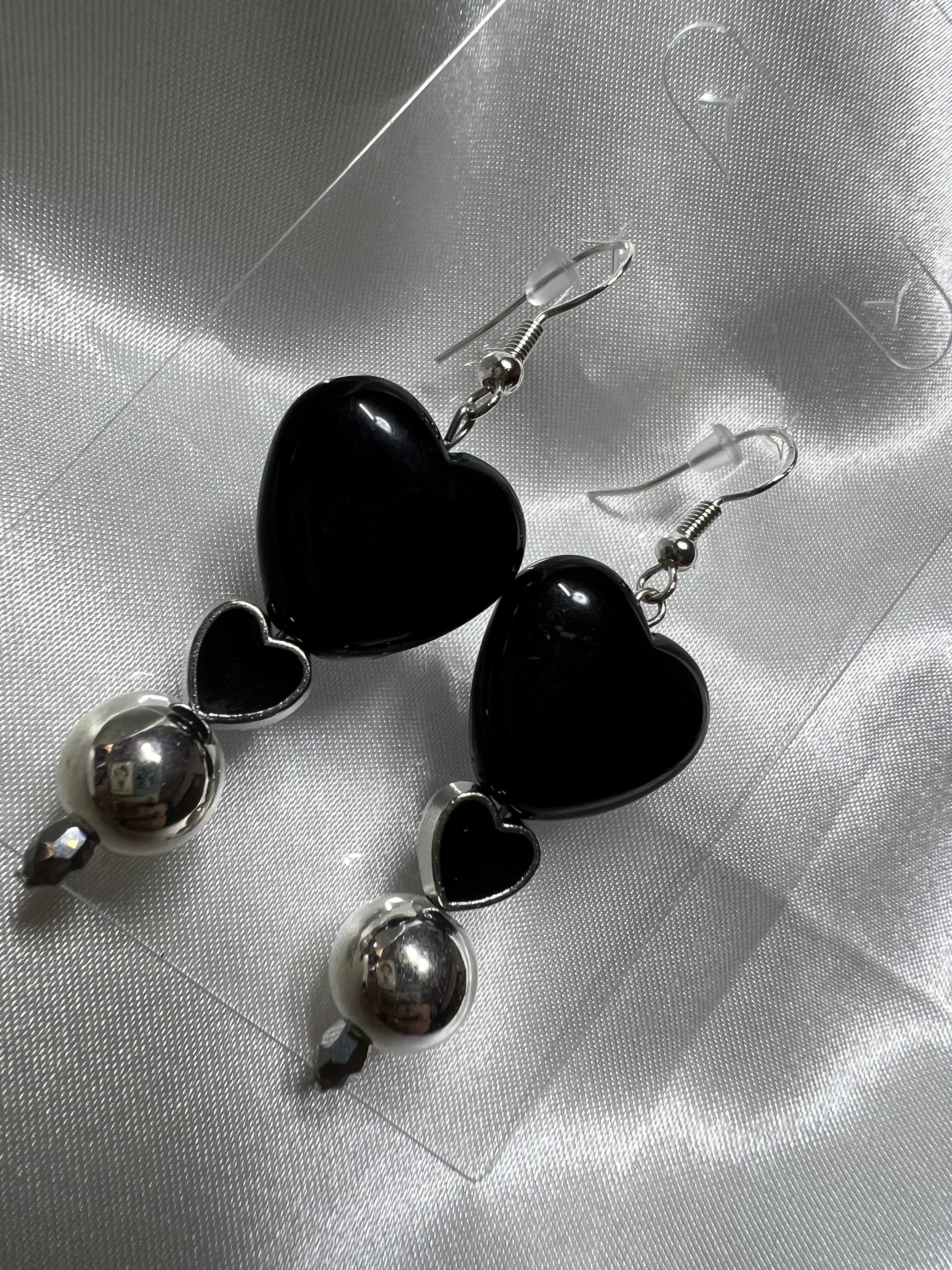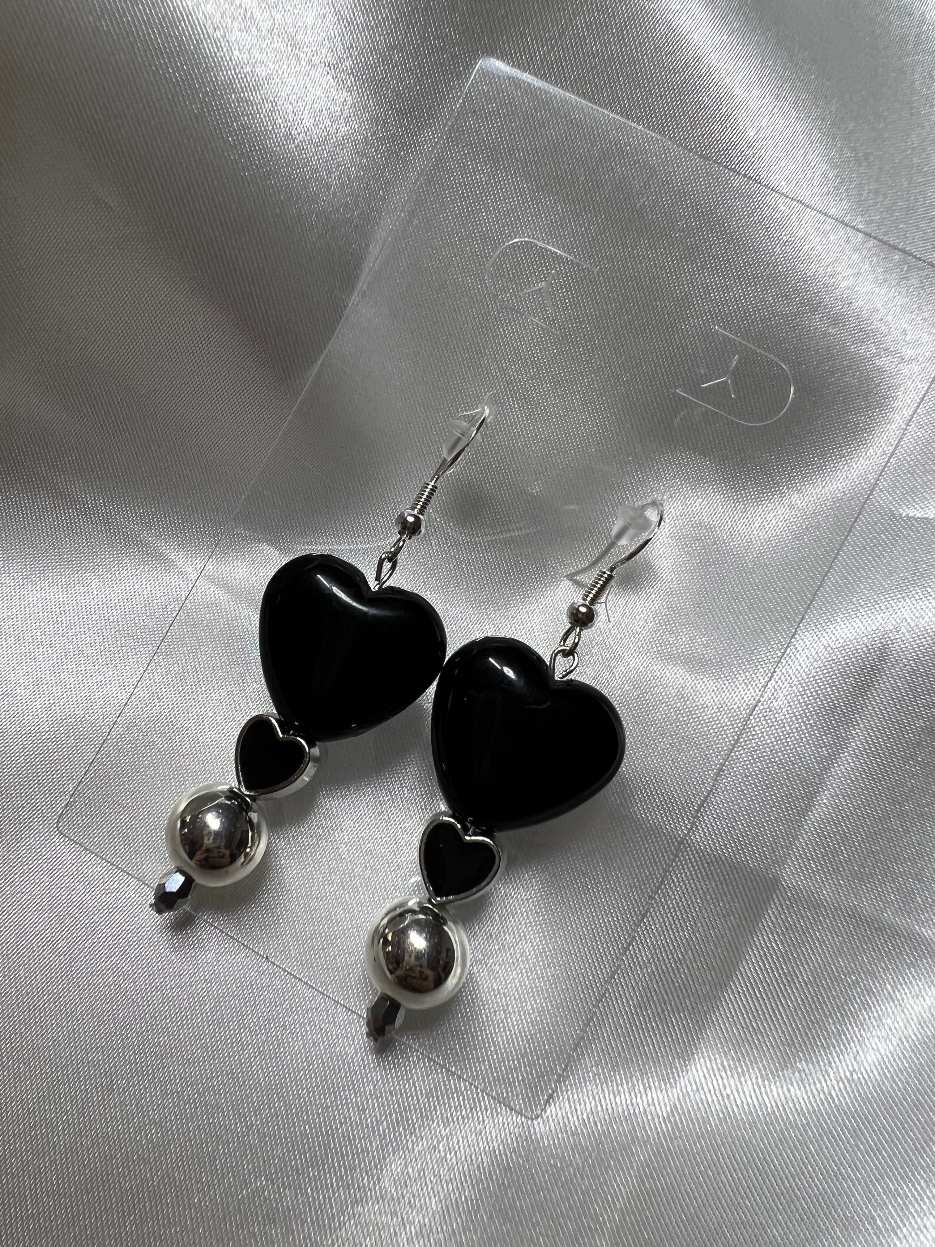 黒いハートが二連のシンプルピアス◎ かっこいいデザインです。