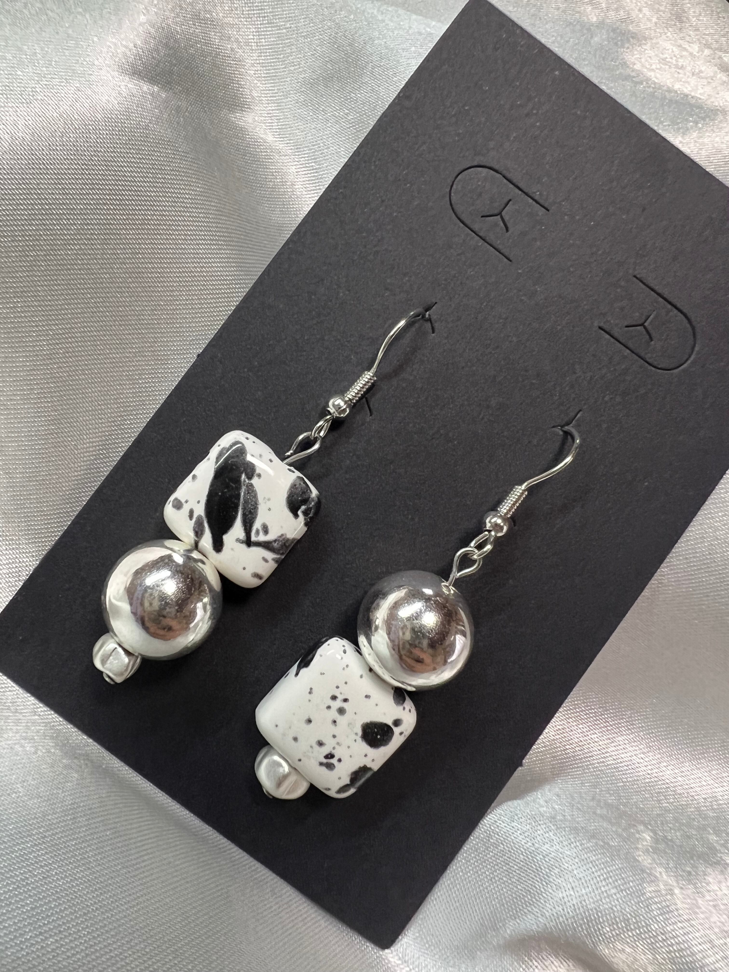 モノトーンでアシンメトリーなデザイン◎ シンプルですが1つ1つ違うペイントのビーズが可愛いです♪