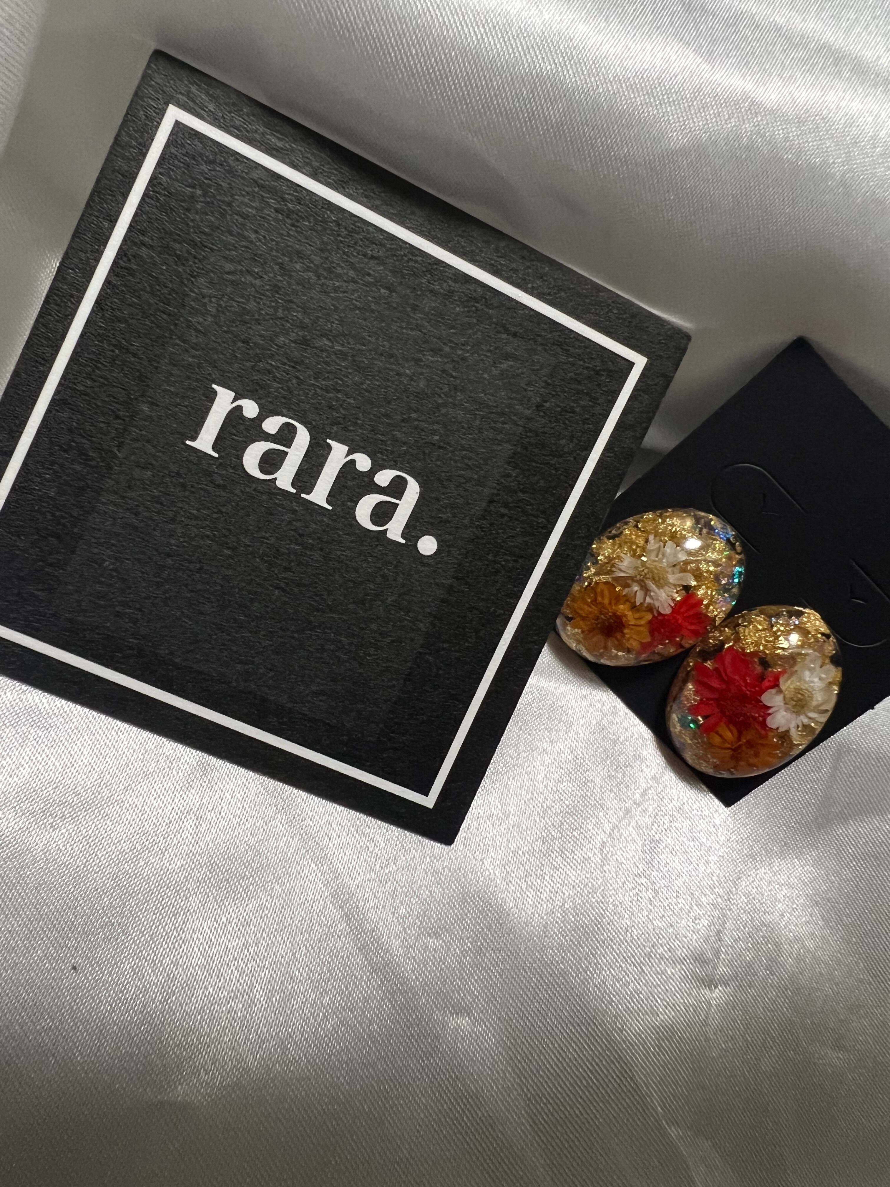 赤とオレンジと白のお花が秋っぽい♪ たっぷりのゴールド感でホログラムとも相性抜群◎