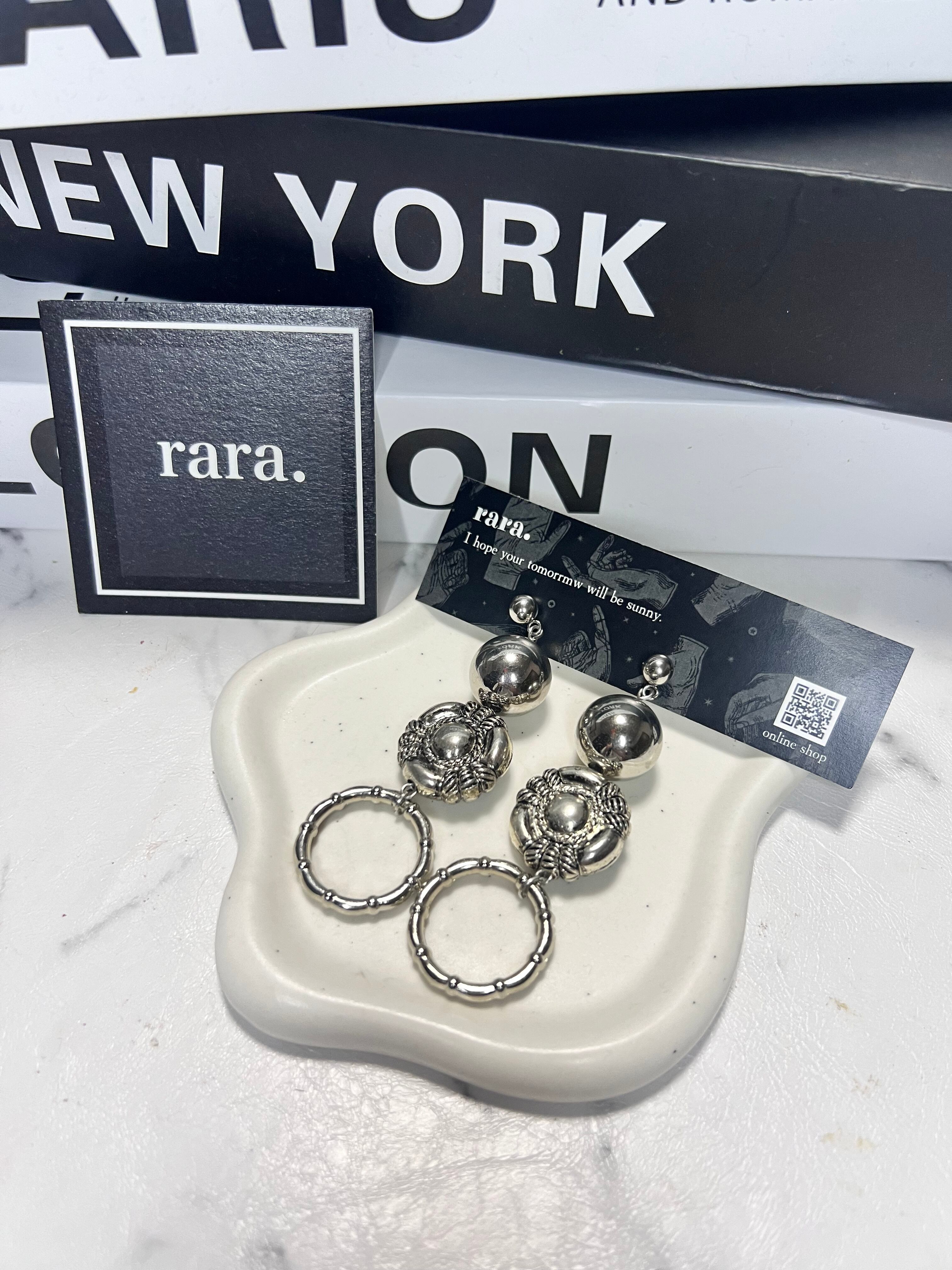 大きめのシルバーボールに デザインが個性的なパーツで少し変わった印象に! フープもデザイン性抜群で相性抜群◎
